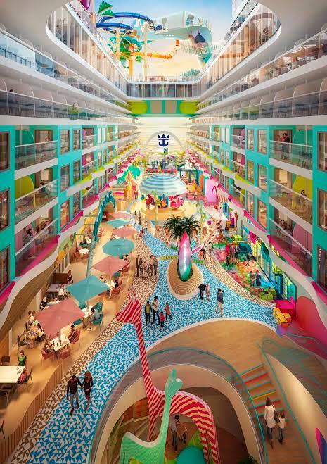 El Icon of the Seas tiene una capacidad para más de 7,500 pasajeros, distribuidos en lujosos camarotes y suites diseñadas para brindar el máximo confort. Con 20 cubiertas y una longitud de más de 365 metros, este barco es una auténtica ciudad flotante.